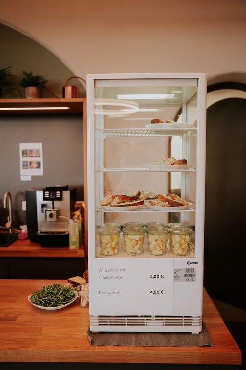 - Weinbar: Probieren Sie sich gerne beim Zehntelausschank durch eine feine Auswahl unserer Bio-Weine, Prickelndem und Alkoholfreiem.